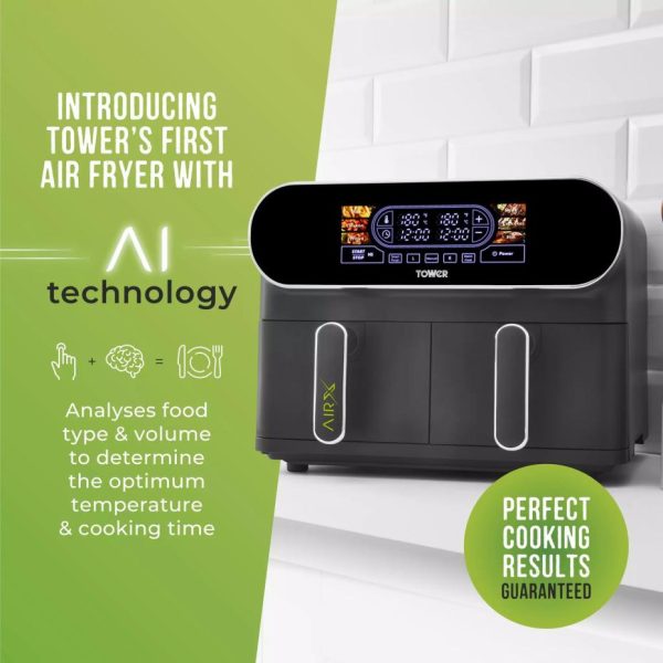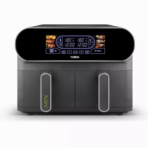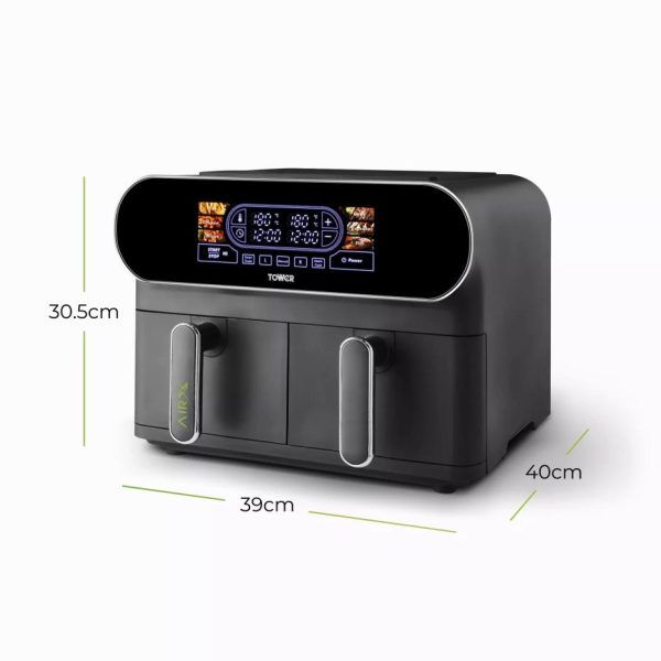 Vortx Litre Dual Basket Air Fryer Black | Air Fryers/Kitchen Tower Housewares Dual Basket Air Fryers