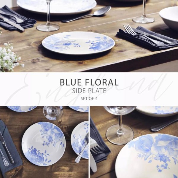Blue Floral Side Plate Set Blue | Homeware Tower Housewares Dinnerware
