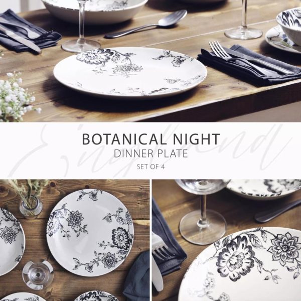 Botanical Night Dinner Plate Set Black | Homeware Tower Housewares Dinnerware