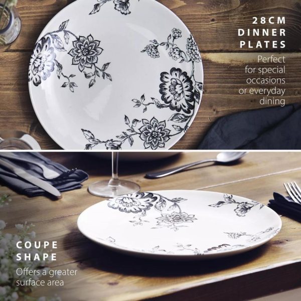Botanical Night Dinner Plate Set Black | Homeware Tower Housewares Dinnerware quantity