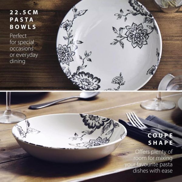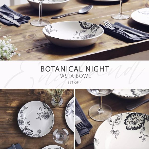 Botanical Night Pasta Bowl Set Black | Homeware Tower Housewares Dinnerware