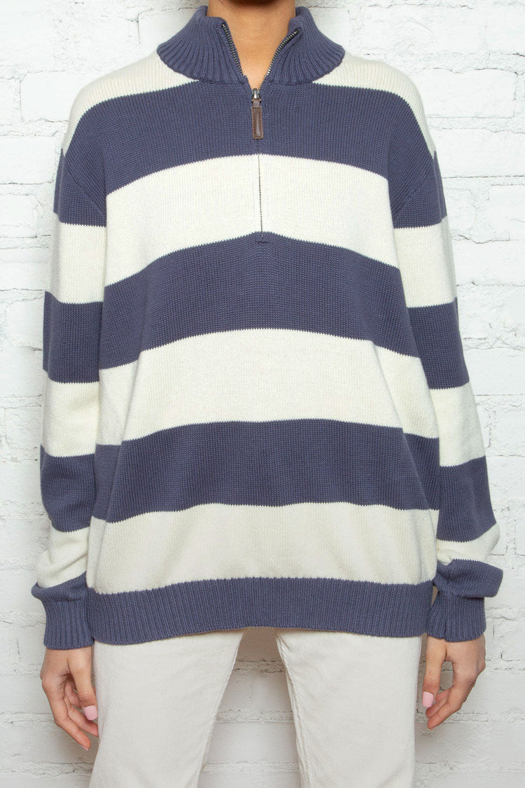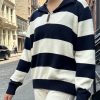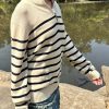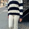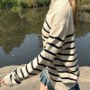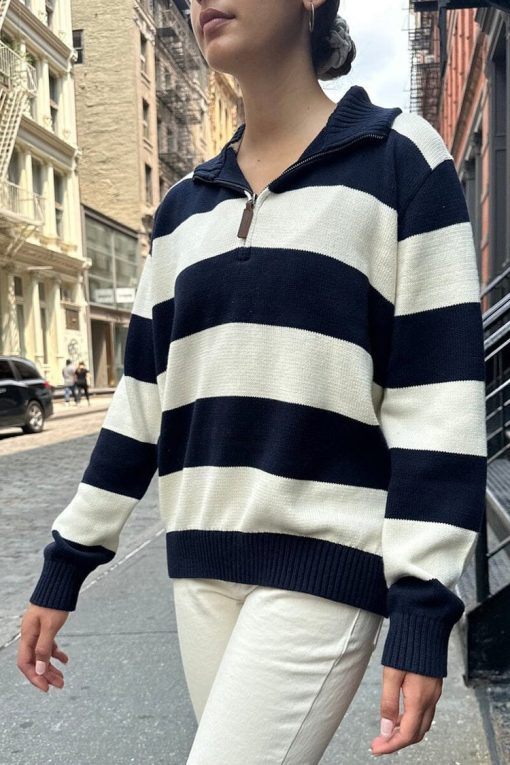 Brandy Melville Women’s Aleah Cotton Stripe Sweater | Ivory Navy Blue Stripes (do Not Enable) Ok
