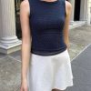 Brandy Melville Women’s Kathleen Polka Dots Top | Navy Blue With White Polka Dots