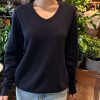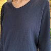 Cozy relaxed thick knit drop shoulder sweater with ribbed trimmings and v-neck collar. Fabrics: 100% wool Measurement: 25″ (64 cm) length, 22″ (56 cm) bust Made In: China
