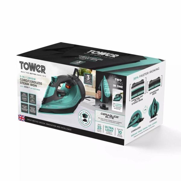 Ceraglide Cord Cordless Steam Iron Teal Teal | Homeware Tower Housewares Cordless Irons