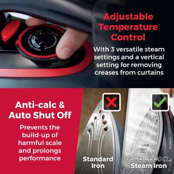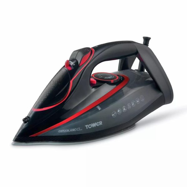Ceraglide Steam Iron XL Soleplate Red | Homeware Tower Housewares Corded Irons