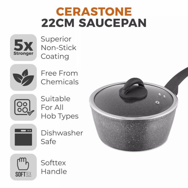 Cerastone cm Forged Saucepan Graphite | Homeware Tower Housewares Sauce Pans