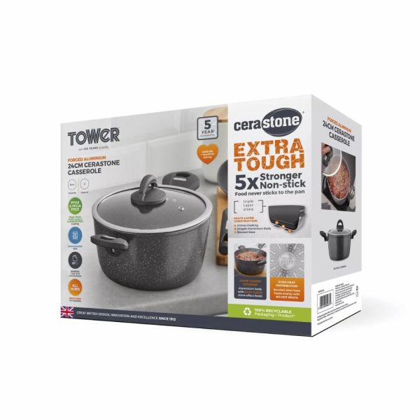 Cerastone Forged cm . Litre Casserole Graphite | Homeware Tower Housewares Casserole Pots