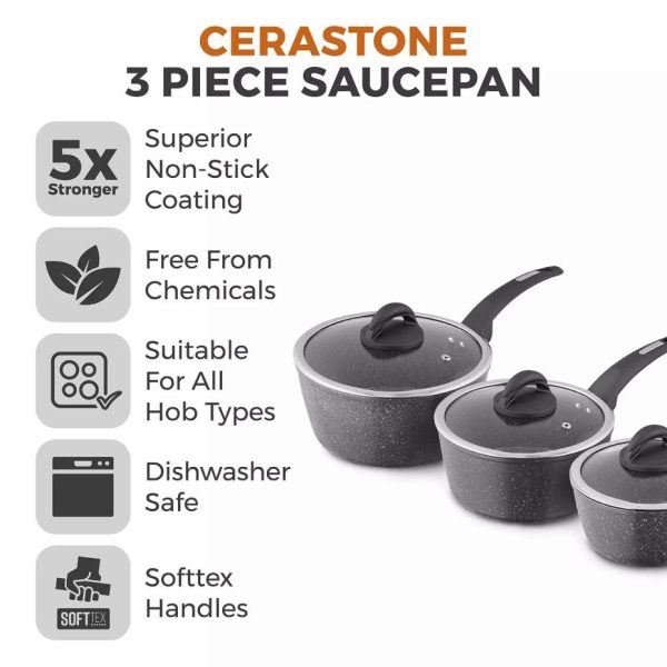 Cerastone Forged Piece Saucepan Set Graphite | Homeware Tower Housewares Pan Sets