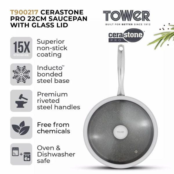 Cerastone Pro cm Saucepan With Glass Lid Graphite | Homeware Tower Housewares Pots & Pans quantity