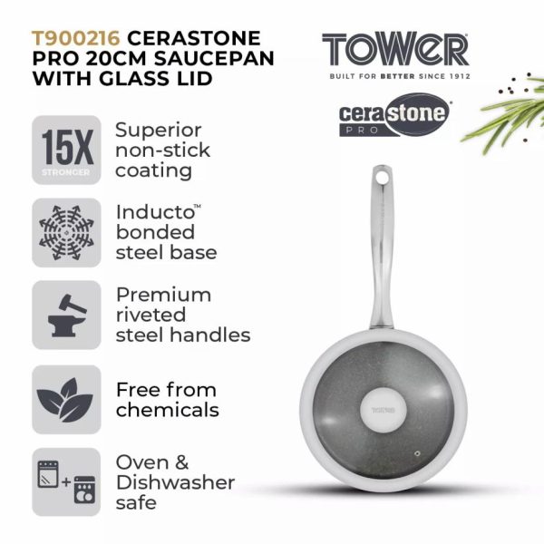 Cerastone Pro cm Saucepan With Glass Lid Graphite | Homeware Tower Housewares Pots & Pans quantity