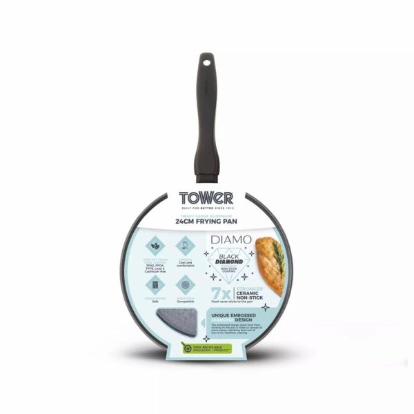 Diamo cm Frying Pan With Black Diamond Coating Black | Homeware Tower Housewares Frying Pans quantity