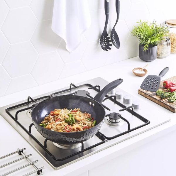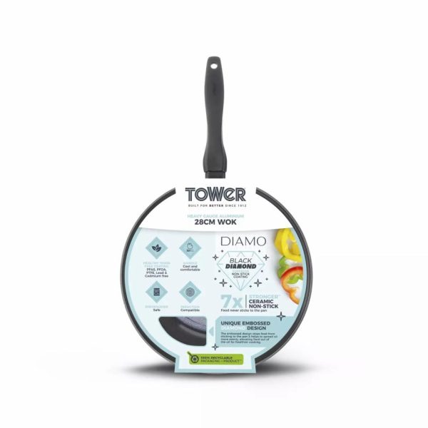 Diamo cm Wok With Black Diamond Coating Black | Homeware Tower Housewares Frying Pans quantity