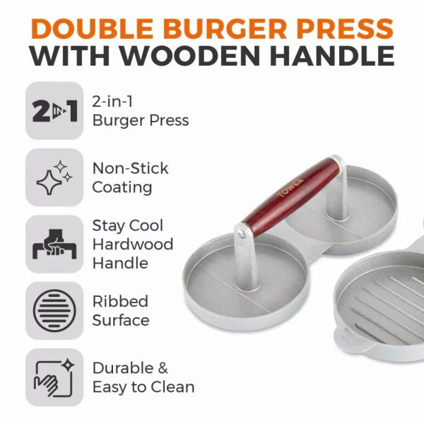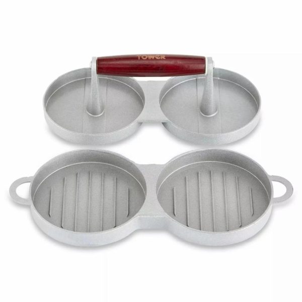Double Burger Press With Wood Stainless Steel | Homeware Tower Housewares Accessories