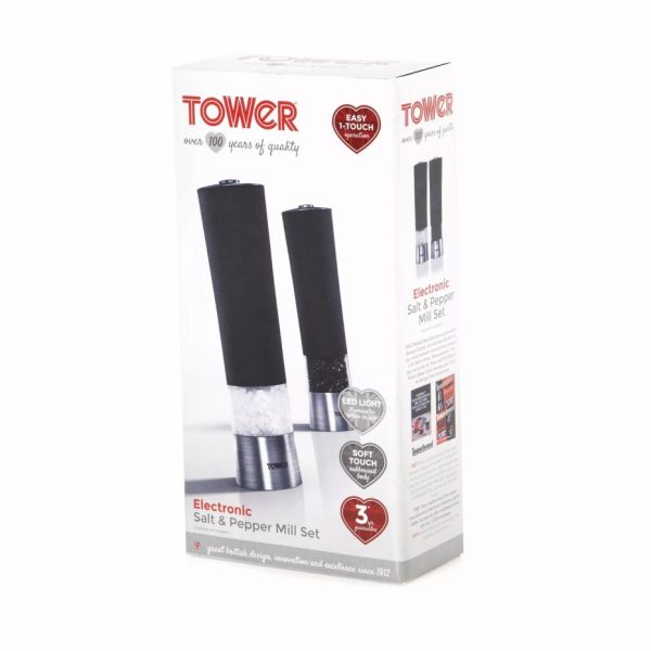 Electric Salt And Pepper Mill Black | Homeware Tower Housewares Condiments quantity