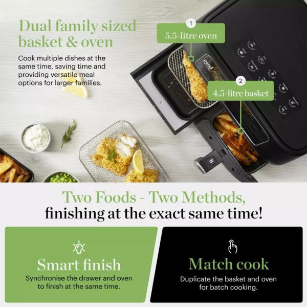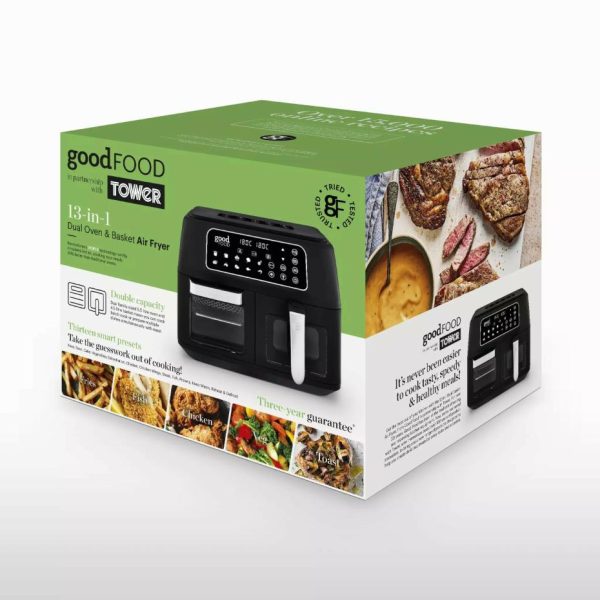 Good Food Litre Oven And Basket Air Fryer Black | Air Fryers/Kitchen Tower Housewares Dual Basket Air Fryers quantity