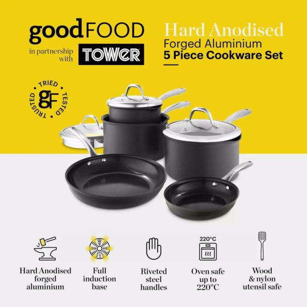 Good Food Piece Cookware Set Grey | Homeware Tower Housewares Pan Sets