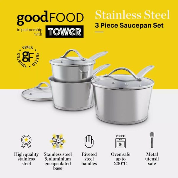 Good Food -Piece Saucepan Set Stainless Steel | Homeware Tower Housewares Pan Sets