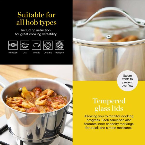 Good Food -Piece Saucepan Set Stainless Steel | Homeware Tower Housewares Pan Sets quantity