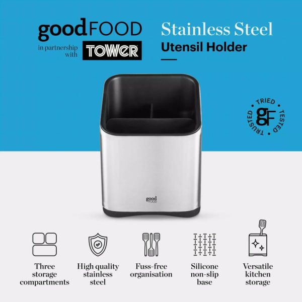 Good Food Utensil Holder Stainless Steel | Kitchen Tower Housewares Utensils quantity
