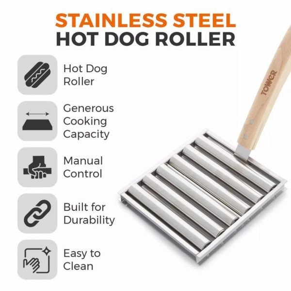 Hot Dog Roller With Wooden Handle Stainless Steel | Homeware Tower Housewares Accessories quantity