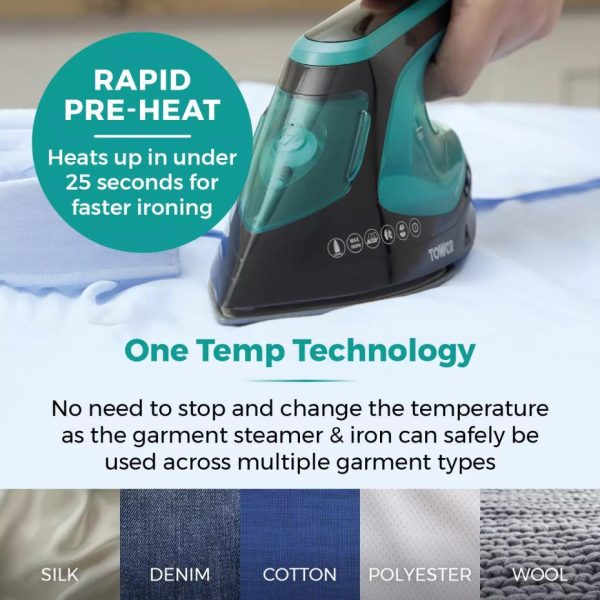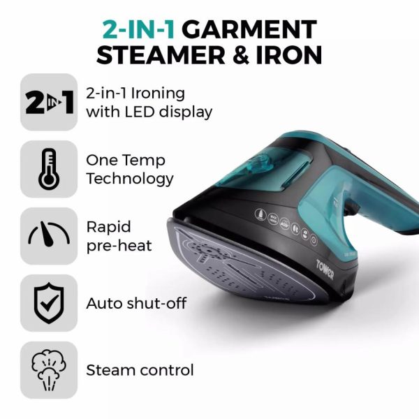 In Hand Garment Steamer & Iron Teal | Homeware Tower Housewares Garment Steamers