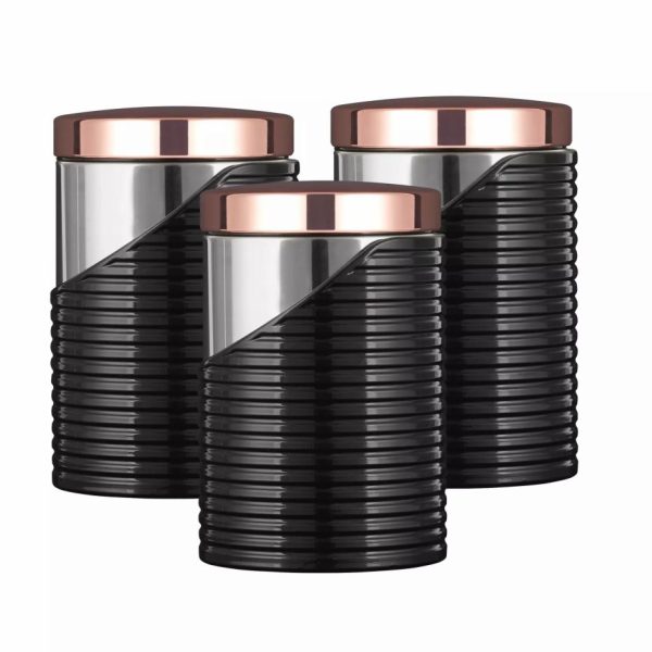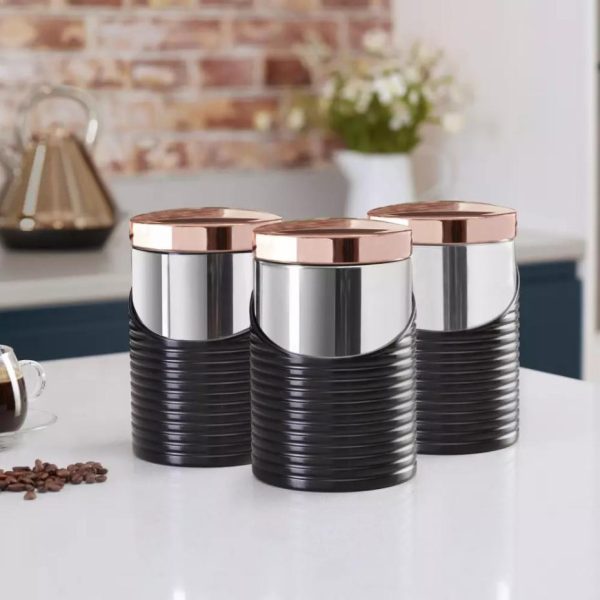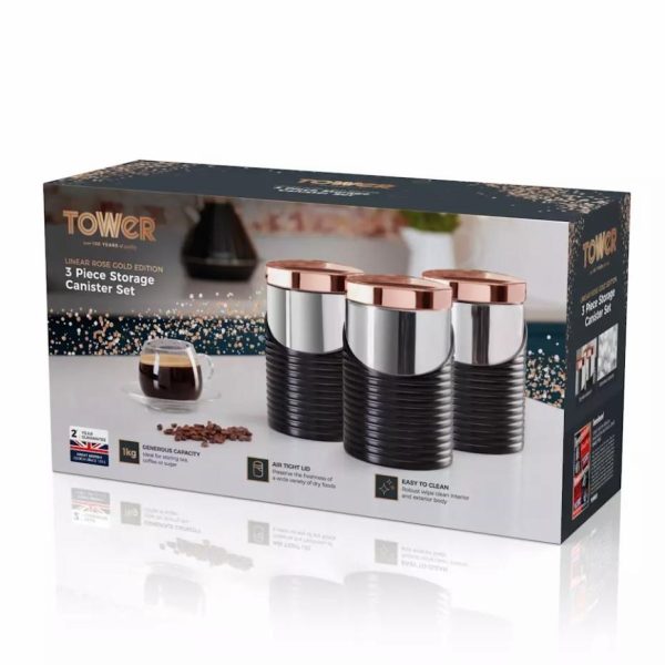 Linear Rose Gold Set Of Canister Black | Homeware Tower Housewares Canisters
