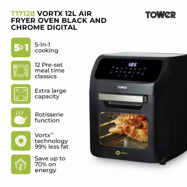 Vortx L Digital Air Fryer Black | Air Fryers Tower Housewares Single Basket Air Fryers