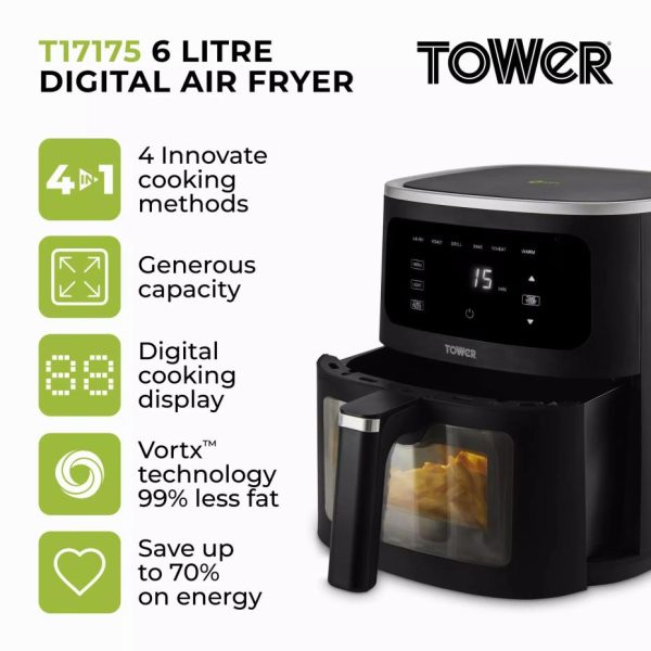 Vortx .L Digital Air Fryer W Black | Air Fryers/Kitchen Tower Housewares Single Basket Air Fryers