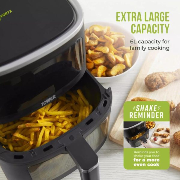 Vortx Vizion Litre Manual Air Fryer Black | Air Fryers Tower Housewares Single Basket Air Fryers