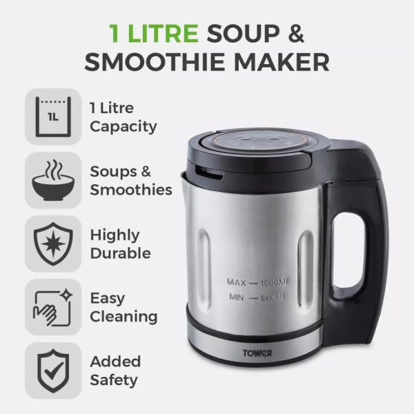 Litre Soup Maker Silver Silver | Kitchen Tower Housewares Soup Makers