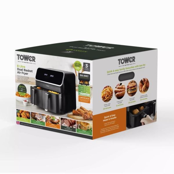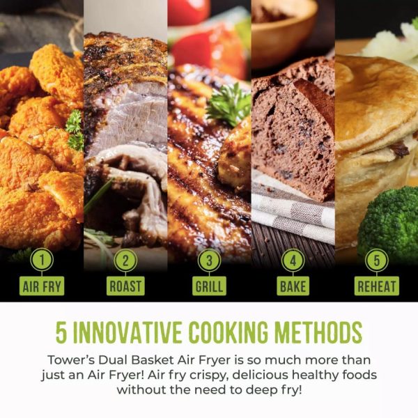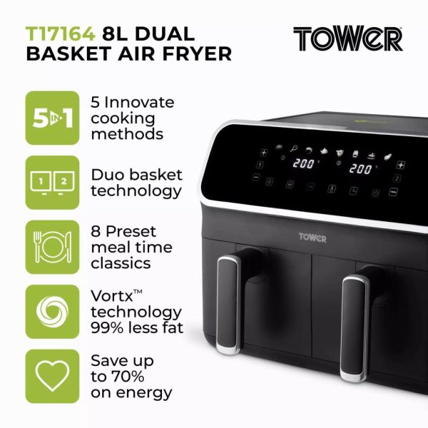 Vortx Litre Dual Basket Air Fryer Black | Air Fryers/Kitchen Tower Housewares Dual Basket Air Fryers