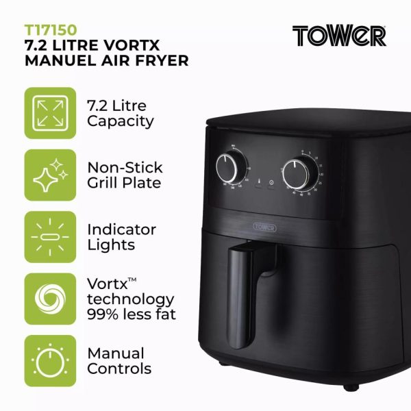 In Smokeless Grill . Litre Black | Air Fryers/Kitchen Tower Housewares Single Basket Air Fryers