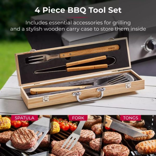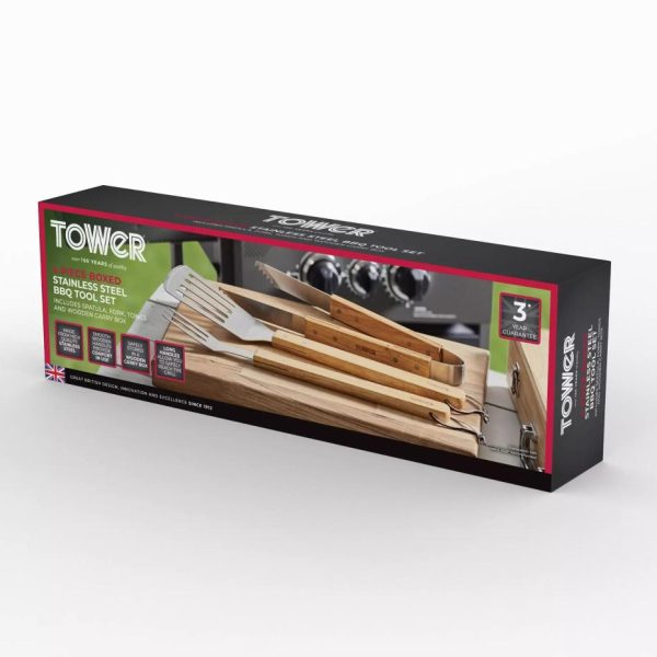 Piece Wooden BBQ Tools Set Stainless Steel | Homeware Tower Housewares Accessories quantity