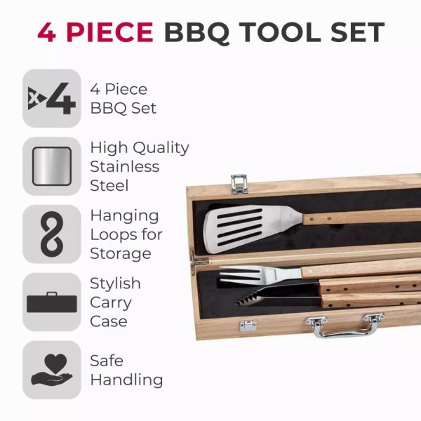 Piece Wooden BBQ Tools Set Stainless Steel | Homeware Tower Housewares Accessories