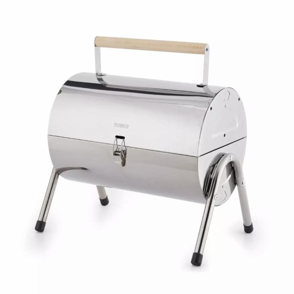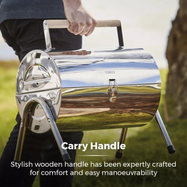 Portable Barrel Grill With Wooden Carry Handle Black | Homeware Tower Housewares Charcoal