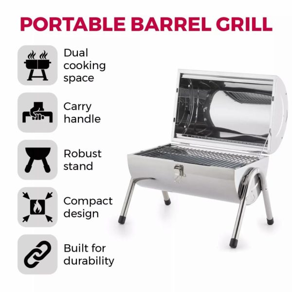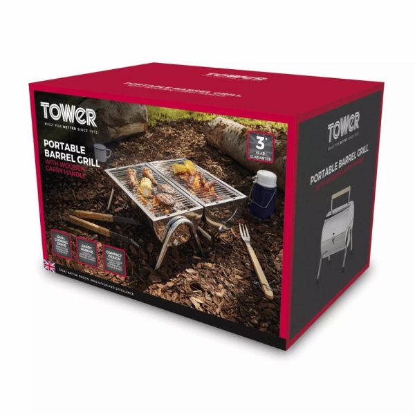 Portable Barrel Grill With Wooden Carry Handle Black | Homeware Tower Housewares Charcoal quantity