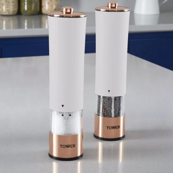 Rose Gold Electric Salt & Pepper Mill White | Homeware Tower Housewares Condiments