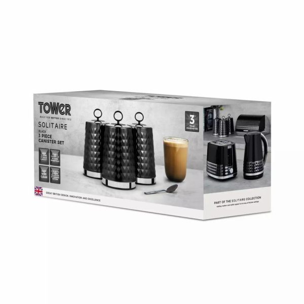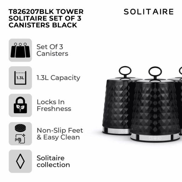 Solitaire Set Of Canisters Black | Homeware Tower Housewares Canisters