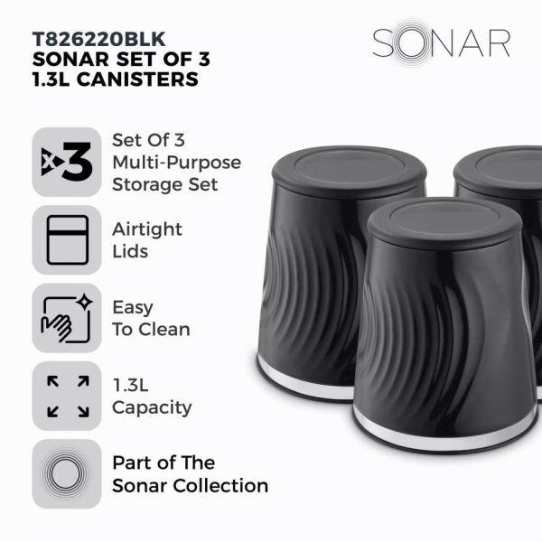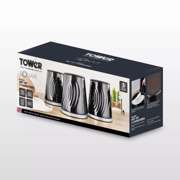Sonar Set Of Canisters Black | Homeware Tower Housewares Canisters