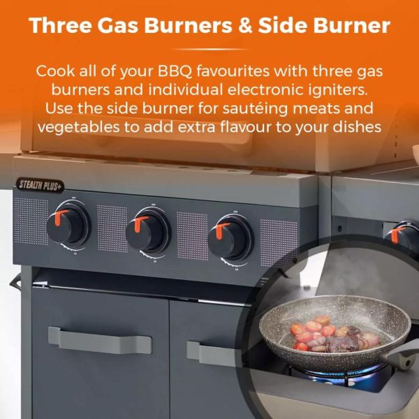 Stealth Plus Three Burner BBQ With Side Burner Black | Homeware Tower Housewares Gas quantity