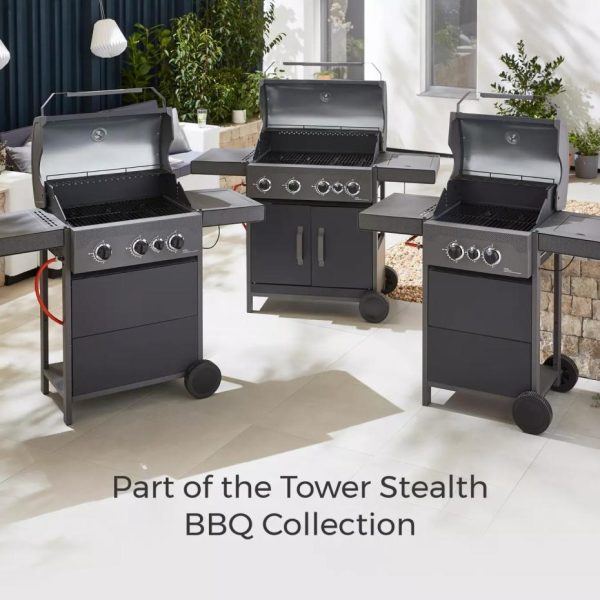 Stealth Two Burner BBQ W/Side Burner Black | Homeware Tower Housewares Gas