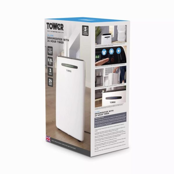 Tower Litre Dehumidifier With Hour Timer White | Homeware Tower Housewares Dehumidifiers quantity