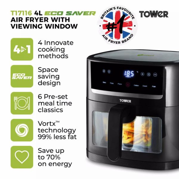 Vizion Litre Eco Saver Air Fryer Black | Kitchen Tower Housewares Air Fryers