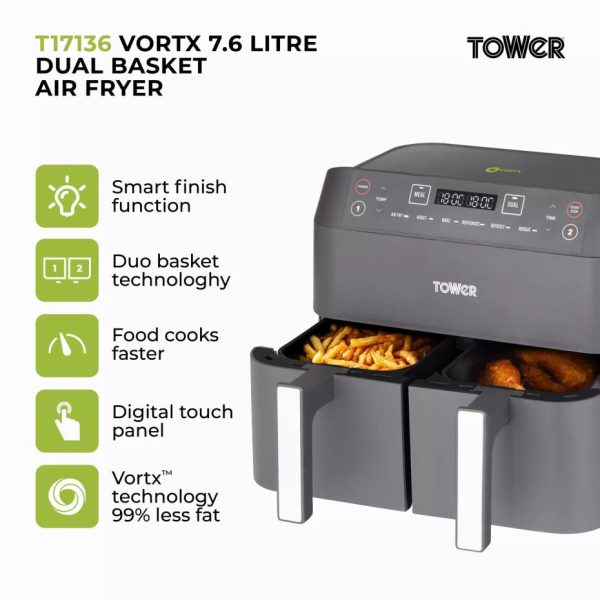 Vortx Litre Dual Layer Air Fryer Black | Air Fryers/Kitchen Tower Housewares Dual Basket Air Fryers