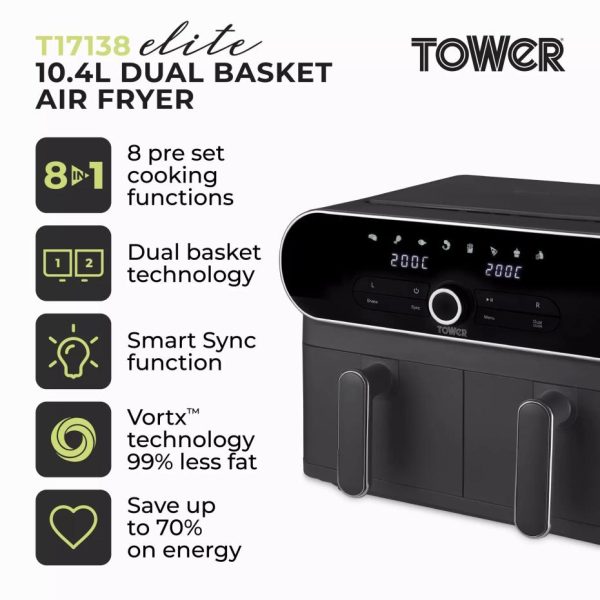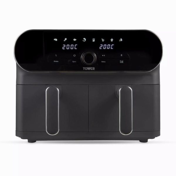 Vortx Litre Dual Basket Air Fryer Black | Air Fryers/Kitchen Tower Housewares Dual Basket Air Fryers