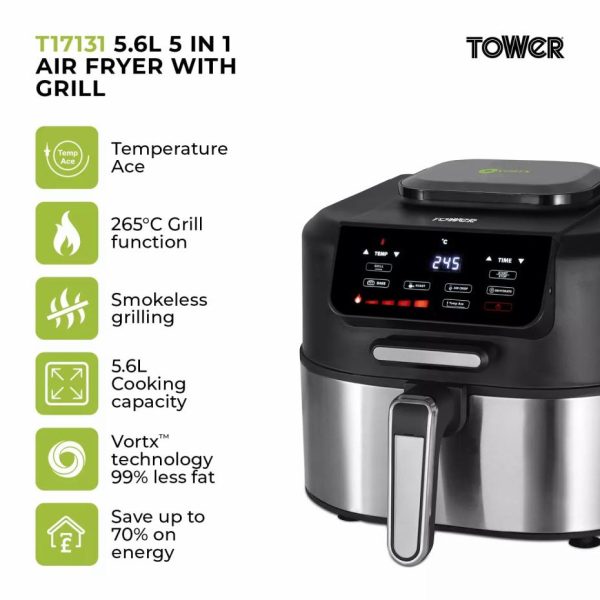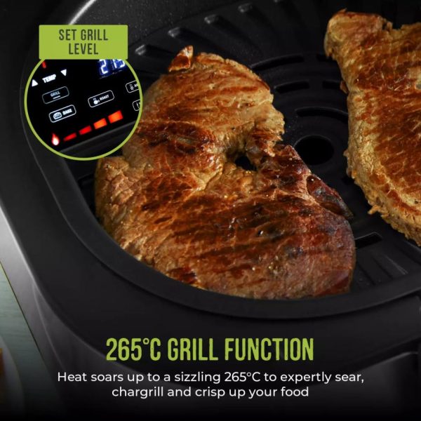 5 Cooking functions: Grill. Air Fry. Bake. Roast. Dehydrate.