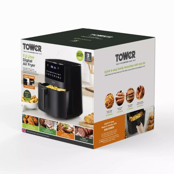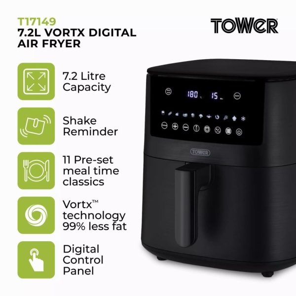 Litre Digital Vision Air Fryer Black | Air Fryers/Kitchen Tower Housewares Single Basket Air Fryers