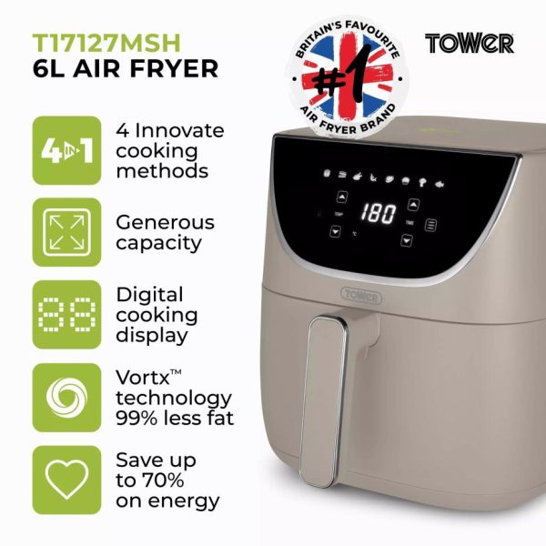 Litre Digital Vision Air Fryer Black | Air Fryers/Kitchen Tower Housewares Single Basket Air Fryers