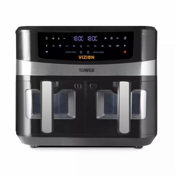 Vortx Litre Dual Layer Air Fryer Black | Air Fryers/Kitchen Tower Housewares Dual Basket Air Fryers